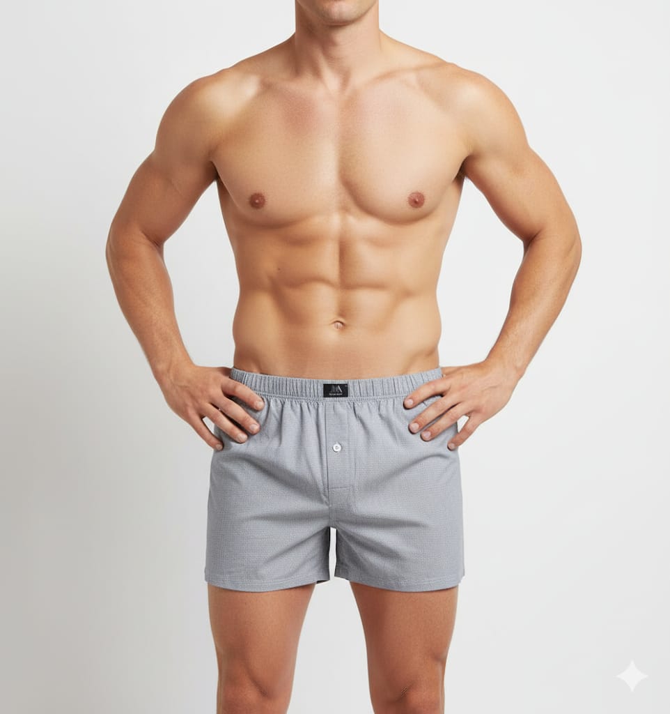 Boxer em malha 100% algodão com abertura e botão. Sem costura na parte de trás.