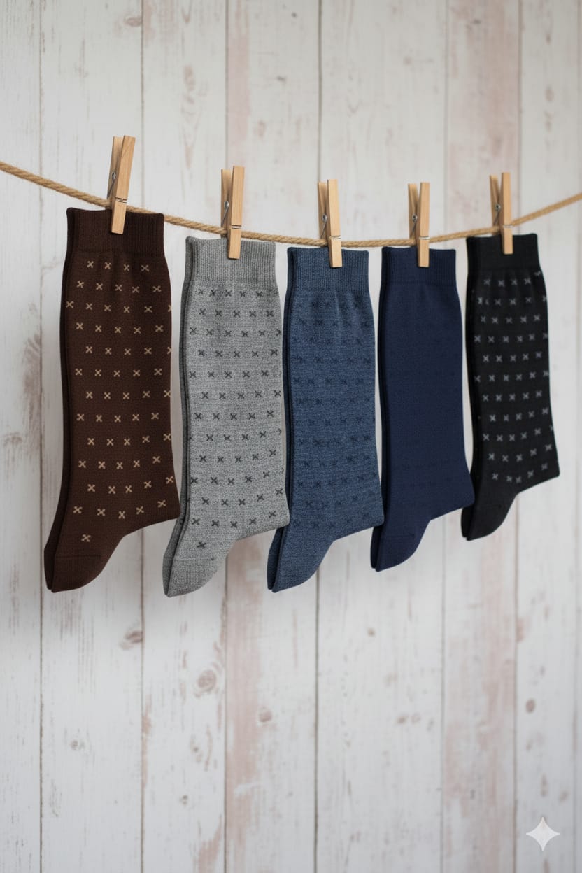 Pack 5 pares: Cores Azul Marinho, Castanho, Cinza Antracite, Cinza, Azul Jeans