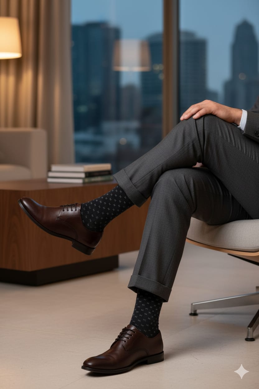 As nossas meias de fantasia Clássica dão-lhe o passe-livre para injetar personalidade no seu traje formal ou mesmo num look mais casual. Cores neutras, padrões discretos e zero bonecos.