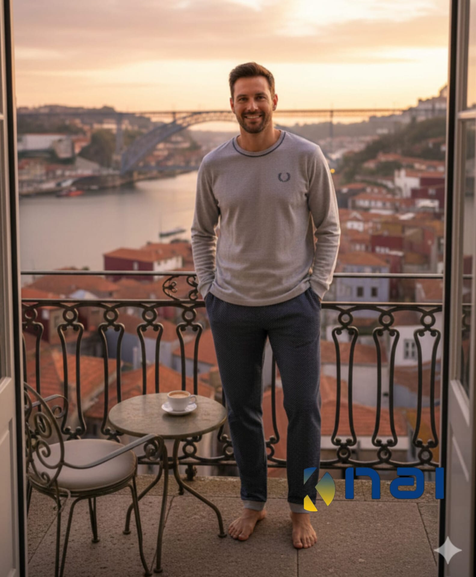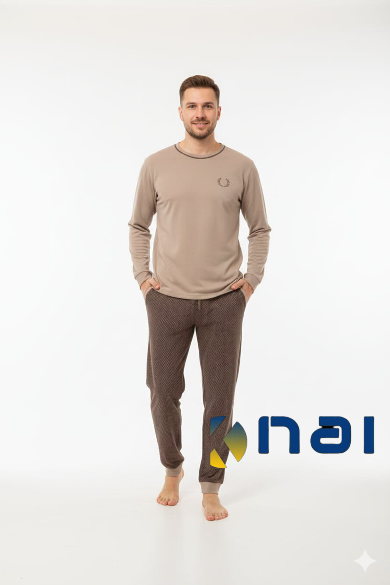 Pijama em malha 100% algodão cardado de excelente qualidade. Camisola com punho na manga e discreto bordado na gola. Calça com elástico no cós, bolsos laterais e punho na perna.