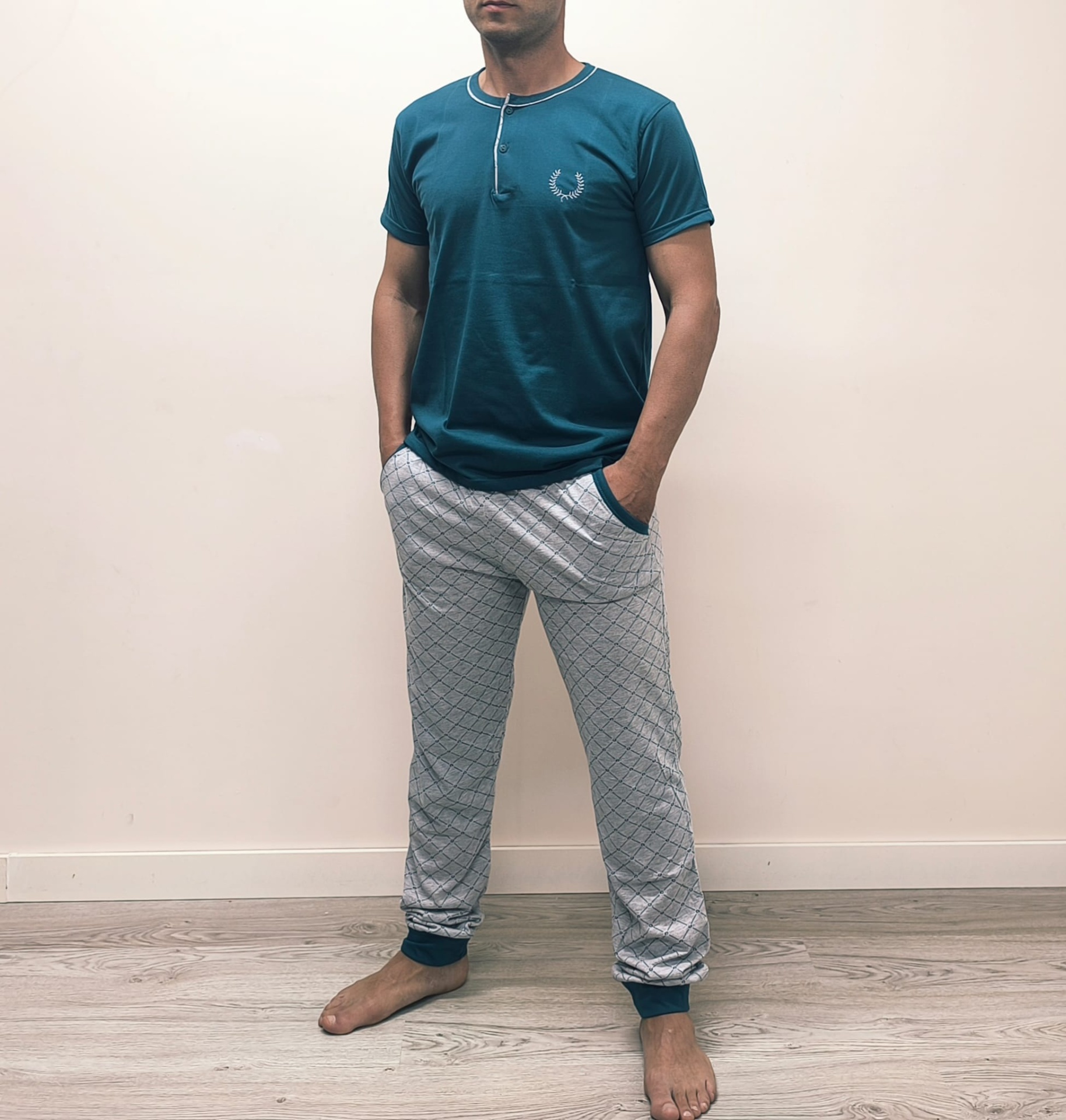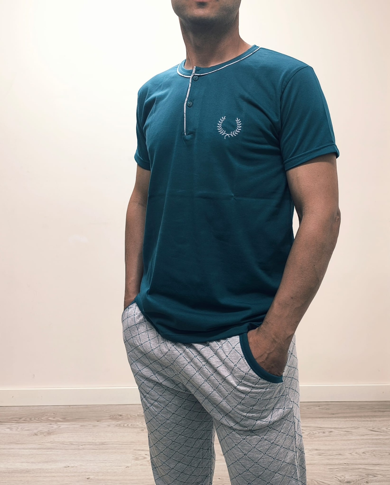 Home Pijamas Primavera/Verão Pijama 100% Algodão Meia Manga Pijama 100% Algodão Meia Manga Cores/Tamanho M Marinho L Verde XL Verde 14,00 € Desconto de %. Comprar Contactar Adicionar à wishlist Pijama confeccionado em malha 100% algodão de excelente qualidade. Camisola com dois botões de meia manga. Calça com estampa discreta, punho suave e bolsos laterais. Obs: Modelo com 1,75mt a vestir o tamanho M. Qualidade superior. Composição: 100% Algodão FABRICADO EM PORTUGAL Partilhar