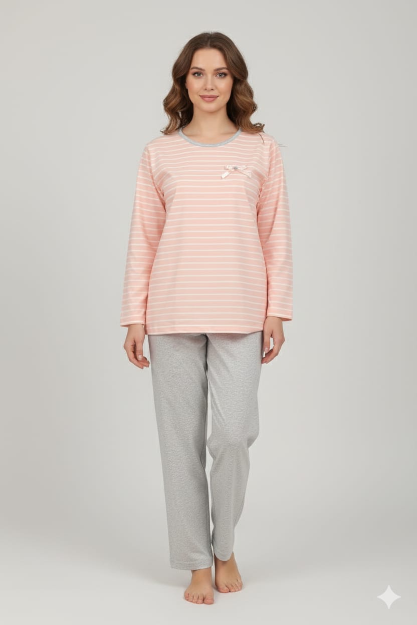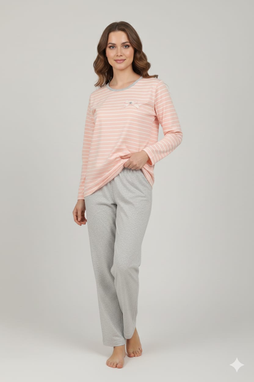Home Pijamas Primavera/Verão Pijama 100% algodão Riscas Pijama 100% algodão Riscas Tamanhos S M L XL XXL Cores Coral Marinho 17,50 € Desconto de %. Comprar Contactar Adicionar à wishlist Coleção Primavera/ Verão Pijama 100% algodão premium, marca NAI qualidade de excelência. Camisola de corte a direito sem punhos, com um delicado detalhe de laço em cetim com botão na zona do peito, conferindo um toque de feminilidade. Calças de corte a direito com um acabamento subtil e minimalista na bainha. Tecido macio e respirável, ideal para as noites mais quentes da estação. Tamanho: S34/36, M36/38, L38/40, XL40/42, XXL42/44 Composição: 100% algodão FABRICADO EM PORTUGAL Marca NAI Características Partilhar