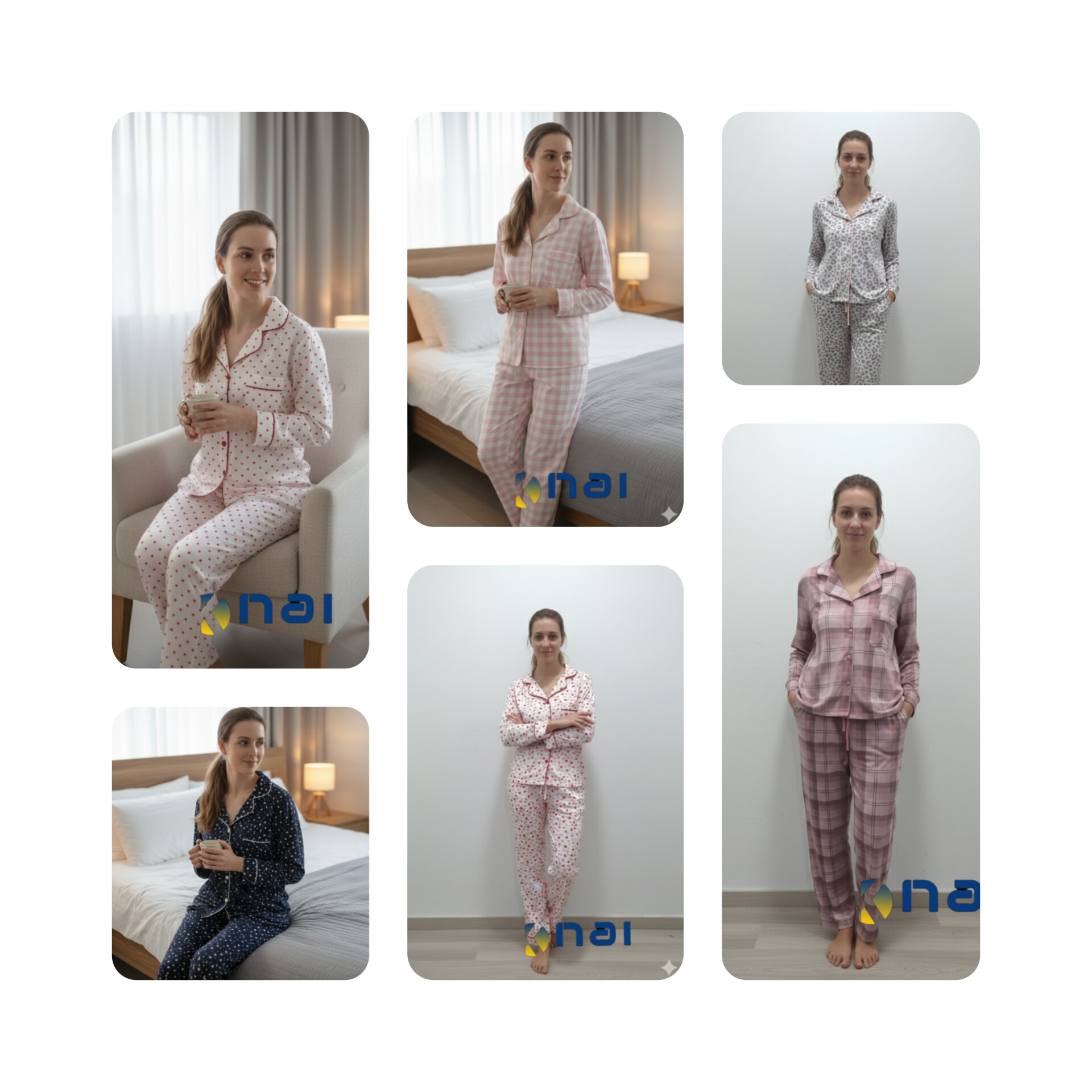 •  Botões forrados e debroado a cetim à cor do pijama.