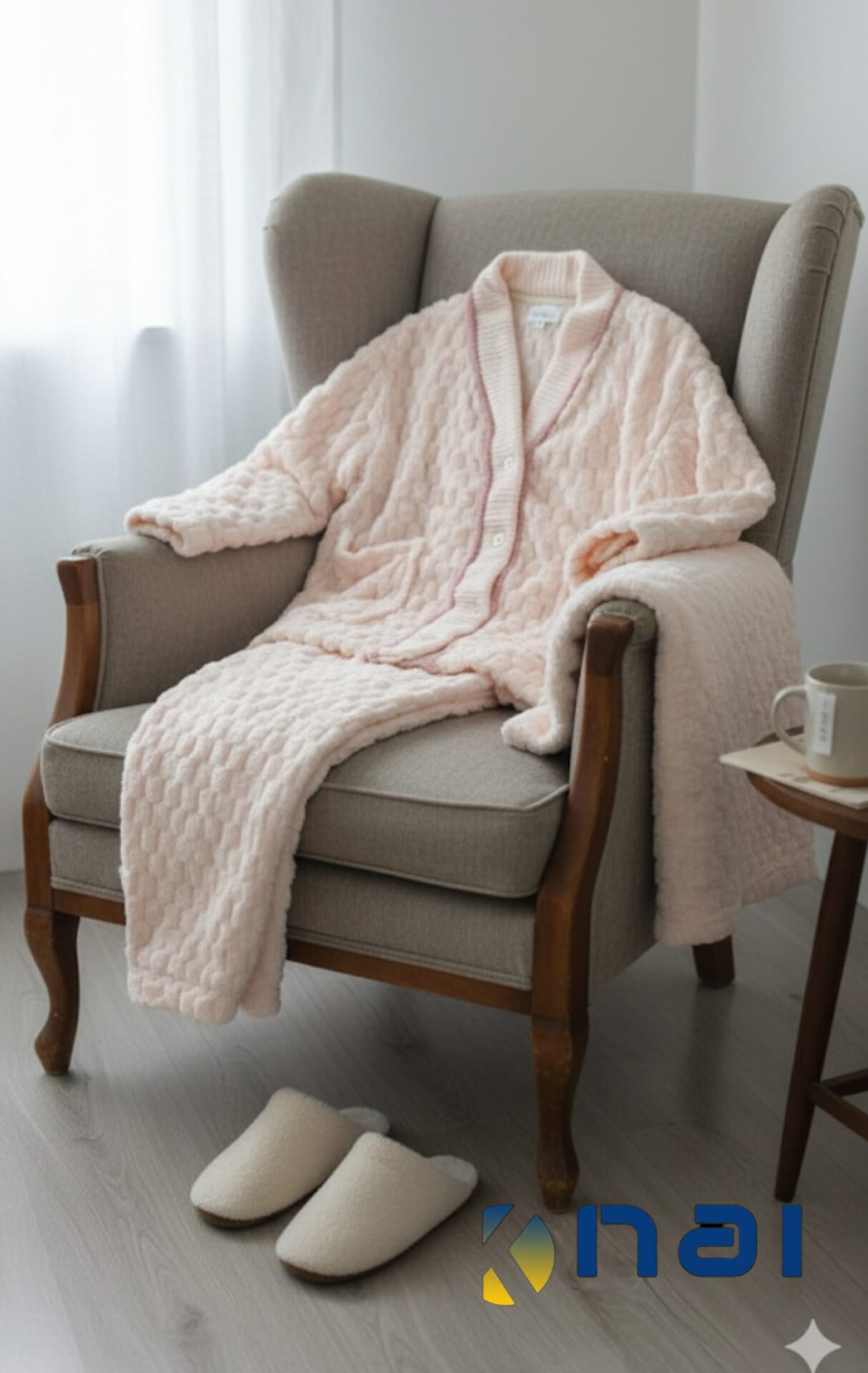 Pijama em malha coralina extra macia e super volumosa. Casaco com botões e bolsos frontais ( estilo oversize). Calças na mesma malha, com elástico no cós.